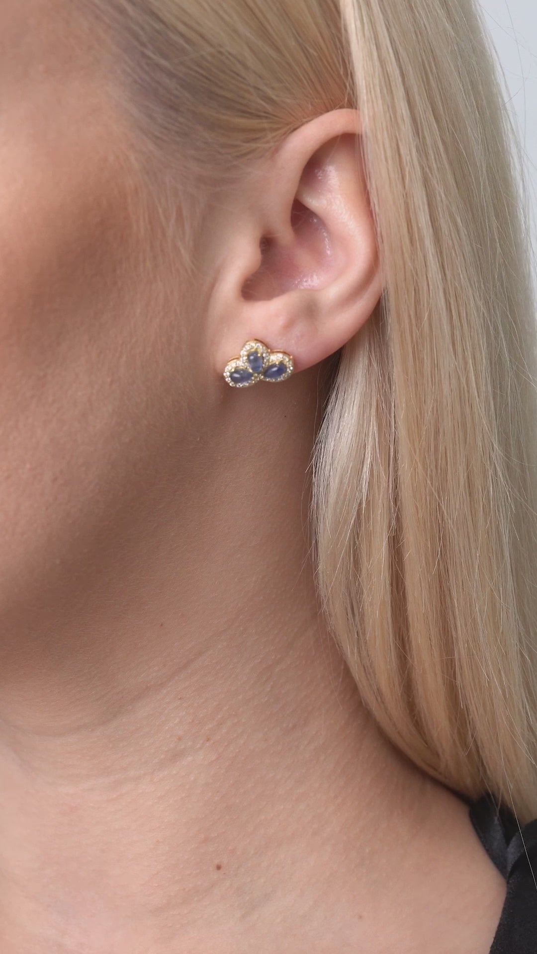 Where the heavens meet artistry, Caleums Jewelry is delighted to present the Heavenly Bloom Earrings. These exquisite earrings are a sublime fusion of celestial inspiration and masterful craftsmanship. Adorned with three radiant blue gemstones, each encircled by a halo of dazzling diamonds, these earrings capture the ethereal beauty of a starlit sky blossoming with shimmering constellations.